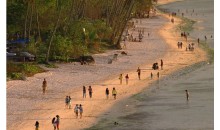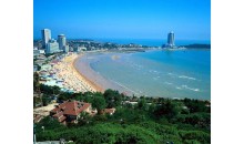 第三海水浴場(chǎng)也叫山海天浴場(chǎng),位于太平角東側(cè),湛山灣畔,規(guī)模雖不大,但海水卻異常清澈。沙灘上建有一幢幢風(fēng)格多樣的更衣室,更衣室沖浴的水是熱水,對(duì)不習(xí)慣冷水沖浴者尤為適宜。