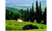 金絲特避暑山莊,位于新疆庫爾勒市和碩縣北紅山地帶那音克鄉(xiāng)的一個(gè)水草豐美的山間小盆地里。沿著崎嶇的山路前40公里左右,就可到達(dá)。這里草地如毯、牛羊成群、喇嘛調(diào)悠揚(yáng)深遠(yuǎn);揚(yáng)鞭縱馬,如入人間仙境。在這里,游人還可以盡情地感受到和碩特蒙古人古樸而濃烈的風(fēng)情。一年一度的那達(dá)慕盛會(huì)更是熱鬧非凡,有醇香的奶酒、鮮美的手抓肉,還有古老悠揚(yáng)的沙吾爾登彈唱,夏日有日吾爾賓館接待游人。