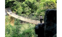 仙人橋位于縣城西南40余公里處的洛陽(yáng)鎮(zhèn)半星雷屋村,高山斜坡上、綠樹(shù)掩映間,有大、小拱天然仙人橋兩座,屬石灰?guī)r溶蝕地貌景觀。大拱橋高70米,寬50米,長(zhǎng)150米,小拱橋更為壯觀,高約138米,內(nèi)拱高106米,寬53米,長(zhǎng)約156米,在大拱仙人橋的入口處,有峰巒延綿,勢(shì)如雄獅回首南望,獅身高約38米,長(zhǎng)約60米,獅頭、獅眼因石灰?guī)r溶蝕脫落而成,形成了“雄獅回頭”的獨(dú)特景觀。