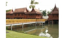 行宮內(nèi)全部采用柚木所建成的,大片綠色草坪上的柚木行宮,建筑風格很明顯受到歐洲的影響,但基本是還是根據(jù)泰國的傳說來興建的。它使用了金色的柚木,卻沒有一根釘子在上面。柚木里有特別的油脂,而使得它能抗熱和大雨,再加上這種油脂本身還有驅(qū)去蟲的功能,更使它成為價值不斐的建筑良材。
