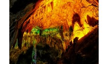 黃果樹神龍洞洞內(nèi)廳廳相連,溶洞縱橫交錯,各類溶洞景觀層出不窮,洞內(nèi)分上、中、下三層,底層暗河與黃果樹大神龍洞風(fēng)光瀑布相連,洞內(nèi)十余萬根鐘乳石琳瑯滿目,大至十余人方可擁抱,小似繡花針。洞中石幔、石瀑、石筍、石花、石柱等溶洞景觀比比皆是。