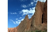 維吾爾語“克孜利亞”是“紅色的山崖”之意。神秘的“天山大峽谷”是天山支脈克孜利亞山中的一條峽谷,紅褐色巖石經(jīng)過大自然億萬年的風(fēng)刻雨蝕之下,才形成由現(xiàn)在“天山大峽谷”?!疤焐酱髰{谷”紅褐色的山體群直插云天,在陽光照射下,猶如一簇簇燃燒的火焰?!疤焐酱髰{谷”的迷人之處,不僅僅在于它的雄奇、險(xiǎn)峻,而在于它的幽深、寧靜和神秘。
