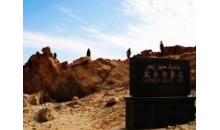 當(dāng)峰回路轉(zhuǎn)之際,車前方忽現(xiàn)一座狀如巨廈的深駝色的山峰,似有廊有柱,有塔有亭,樓閣錯(cuò)落,宛如"布達(dá)拉宮",令人詫嘆不軒。復(fù)前行,又見一色彩斑斕之奇峰,通體呈赭紅色,但另有絳紫、桃約、玫瑰紅、青綠、淡黃、淺灰、月白、深黛……的色塊、條紋。