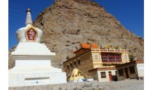 阿貴廟位于蹬口縣沙金套海蘇木境內(nèi)的狼山山脈中,坐落在漢代古城雞鹿塞西邊的溝內(nèi),是內(nèi)蒙古地區(qū)紅教喇嘛的唯一寺廟。蒙古語意為有山洞的廟。占地1500畝。清朝定名為“宗乘寺”。為典型藏式建筑,順山勢建成大雄寶殿及陪殿,共981間。阿貴廟奉其創(chuàng)始人印度僧蓮花生為祖師。