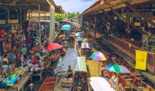 在泰文的意思是『賓至如歸』,當(dāng)年的泰皇拉瑪五世微服出巡到此,不知情的村長一樣熱情的款待,讓五世皇深受感動(dòng),于是便以Damnnoen Saduak命名,也為水上市場帶來了百年的豐盈。