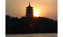 雷峰夕照西湖十景之七,雷峰夕照,位于西湖湖南、凈慈寺前的夕照山上,因晚霞鍍塔,佛光普照而聞名。雷峰塔建于五代(975),是吳越國(guó)王錢弘俶為慶祝黃妃得子而建,初名黃妃塔。因建在當(dāng)時(shí)的西關(guān)外,故又稱為西關(guān)磚塔。原擬建十三層,后因財(cái)力所限,只造了五層。明代嘉靖時(shí),倭寇入侵,疑心塔內(nèi)有伏兵,縱火焚塔,僅存塔心。