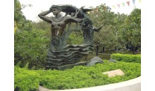 公園環(huán)境舒適,草坪舒展,山丘起伏,林木蒼翠,湖波粼粼,好一派自然清新的郊野風情。氣勢宏偉的南北大門景色,門前廣場橫跨寬度達 100 米,建筑風格獨特,植物色彩配置艷麗,布置緊湊,頗有現(xiàn)代公園氣派。最為壯觀的南門中軸廣場,兩側種植風景林,配置各類棕櫚植物,襯托著中央的立體八角花壇,更加洋溢著嶺南園林的氣息。